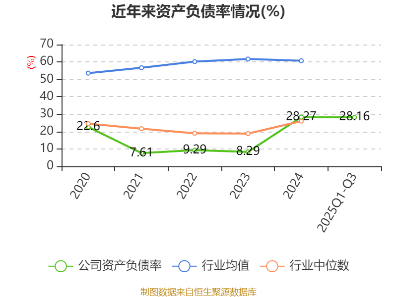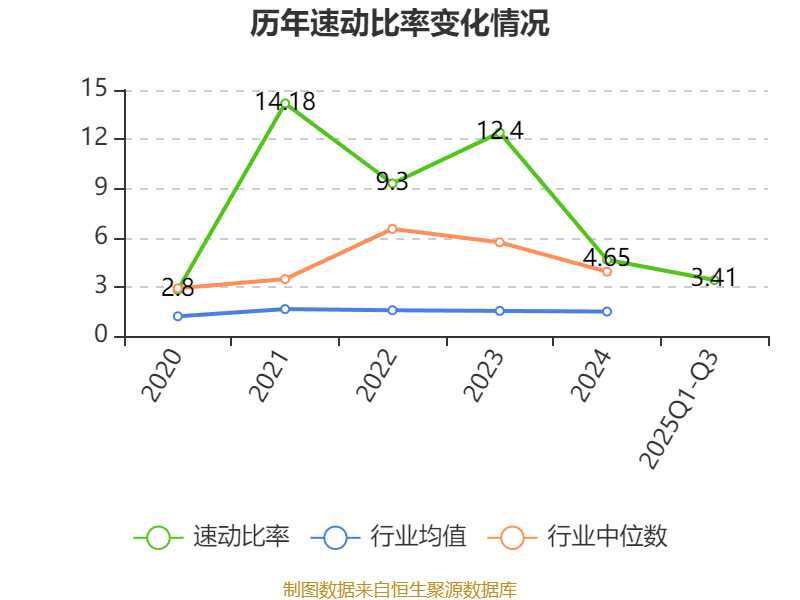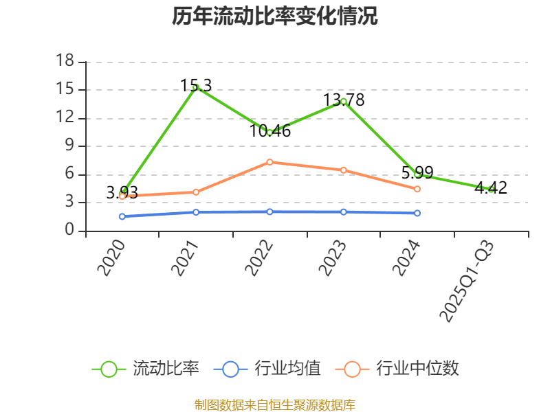 2025年前三季度,公司流动比率为4.42,速动比率为3.41。