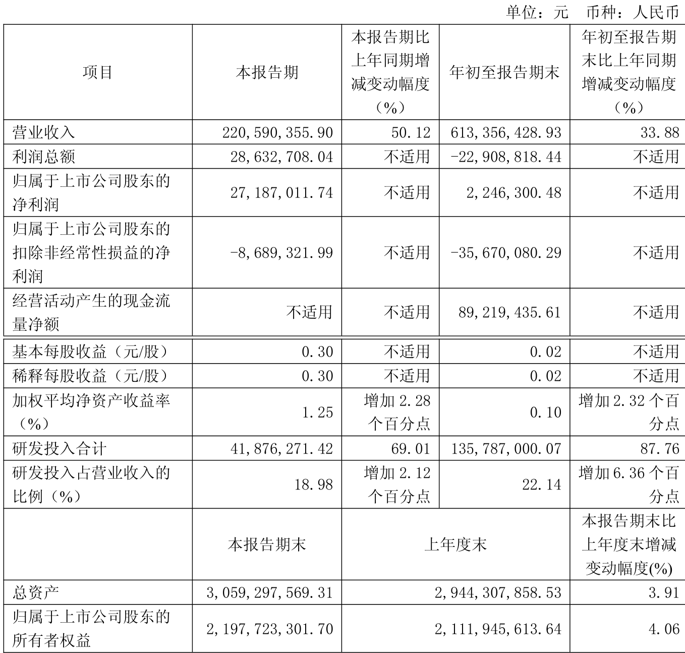 中证智能财讯炬光科技(688167)10月30日披露2025年第三季度报告。前三季度公司实现营业总收入6.13亿元,同比增长33.88%;归母净利润224.63万元,同比扭亏;扣非净利润亏损3567.01万元,上年同期亏损5739.97万元;经营活动产生的现金流量净额为8921.94万元,上年同期为-2326.95万元;报告期内,炬光科技基本每股收益为0.02元,加权平均净资产收益率为0.10%。