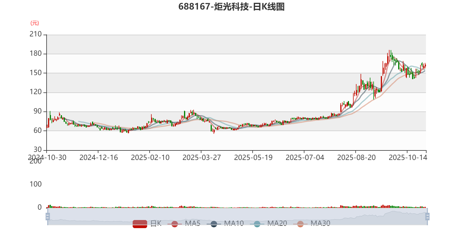 以10月29日收盘价计算,炬光科技目前市盈率(TTM)约为-121.2倍,市净率(LF)约6.67倍,市销率(TTM)约18.9倍。