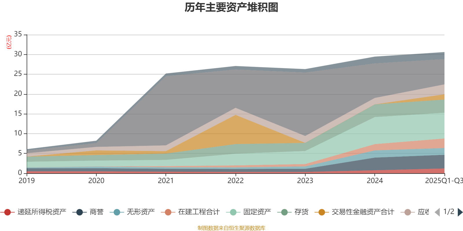 资产重大变化方面,截至2025年三季度末,公司货币资金较上年末减少26.97%,占公司总资产比重下降8.82个百分点;交易性金融资产合计占公司总资产的4.32%,上年末为0;应收票据及应收账款较上年末增加55.16%,占公司总资产比重上升2.71个百分点;在建工程合计较上年末增加51.11%,占公司总资产比重上升2.45个百分点。