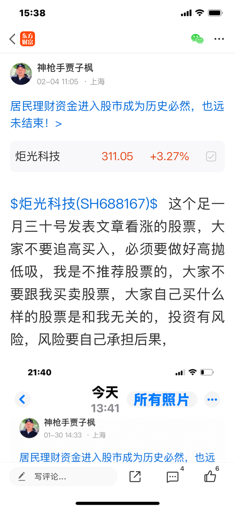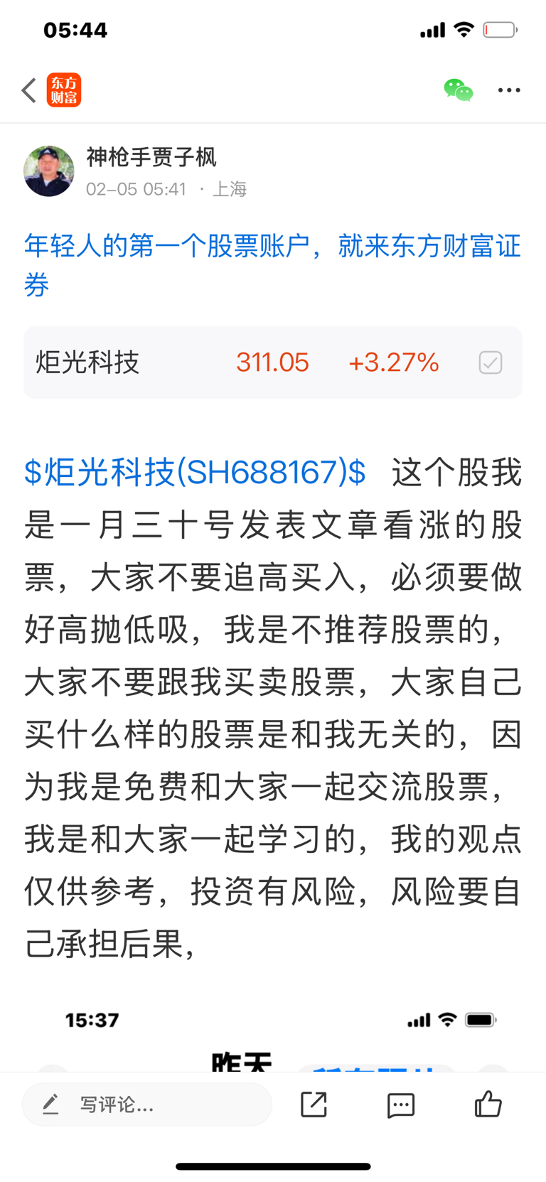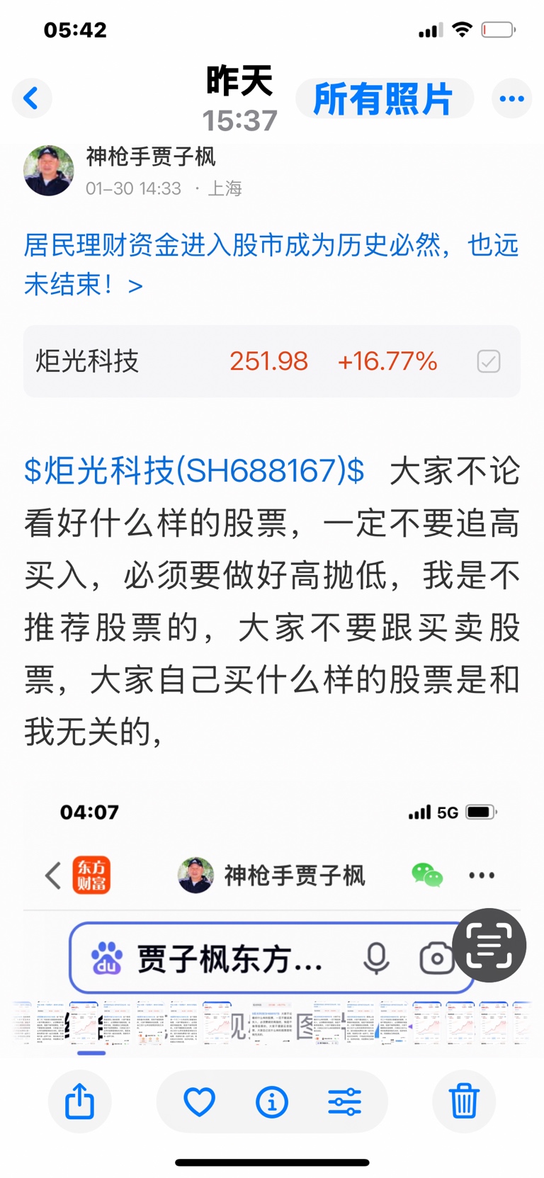 $炬光科技(SH688167)$ 这个股是我一月三十号发表文章看涨的股票,大家不要追高买入,必须要做好高抛低吸,我是不推荐股票的,大家不要跟我买卖股票,大家自己买什么样的股票是和我无关的,因为我是免费和大家一起交流股票,我是和大家一起学习的,我的观点仅供参考,投资有风险,风险要自己承担后果,