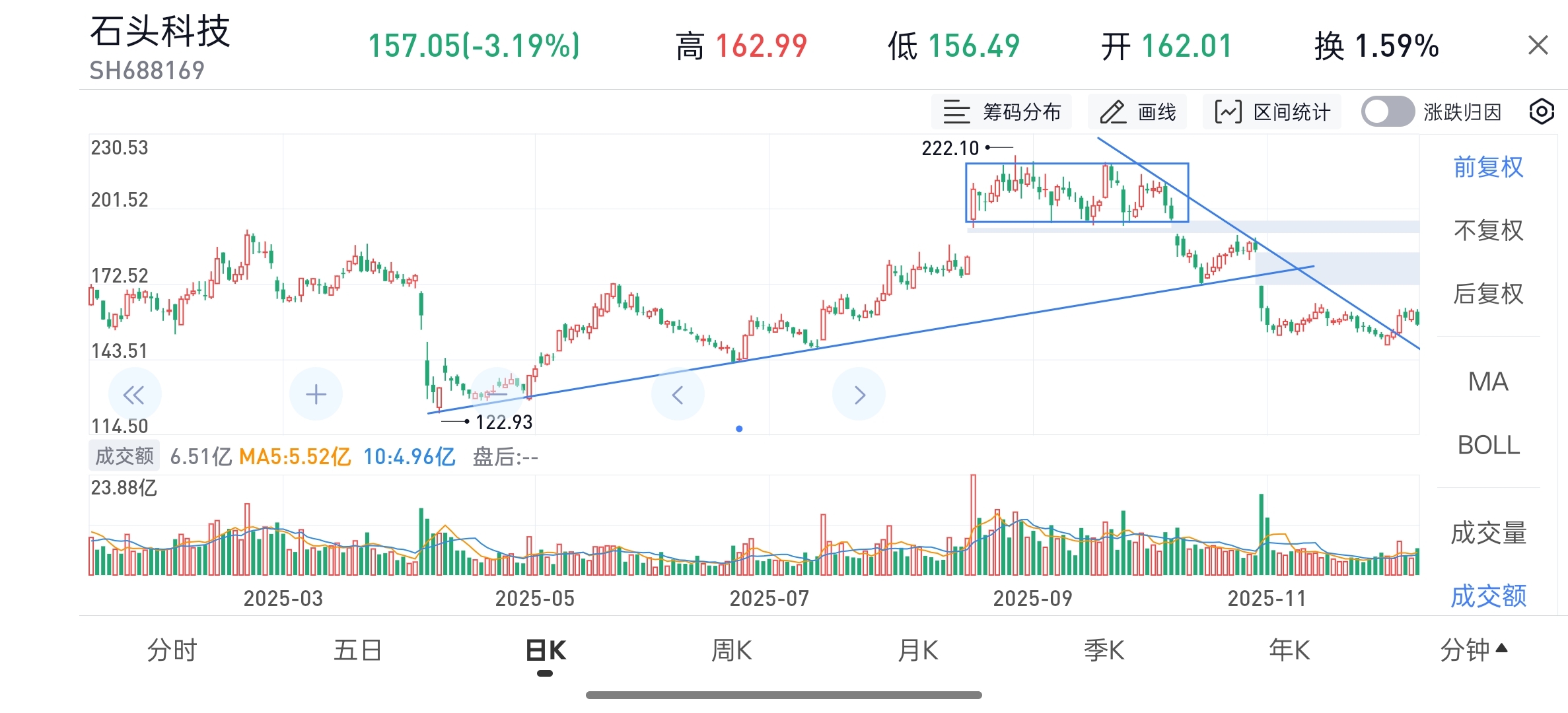 $石头科技(SH688169)$ 结构清晰不清晰,前几天已经破了反压趋势线