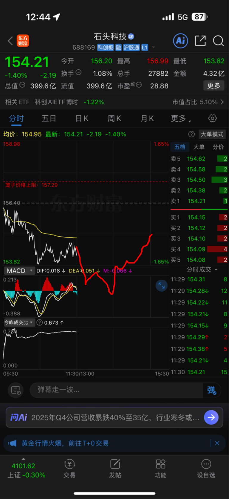 $石头科技(SH688169)$ 下午走势预测