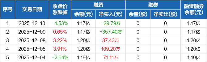 德龙激光:融资净偿还29.79万元,融资余额1.17亿元(12-10)