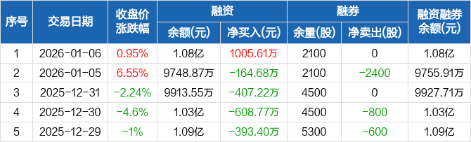 德龙激光:融资净买入1005.61万元,融资余额1.08亿元(01-06)