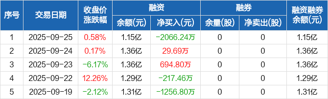 纬德信息:融资净偿还2066.24万元,融资余额1.15亿元(09-25)