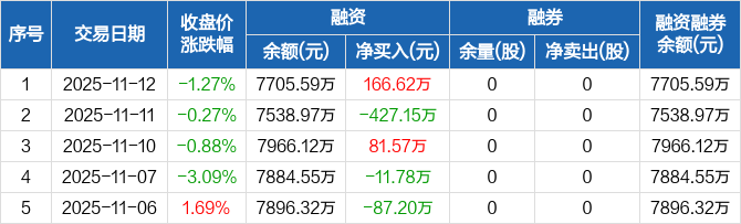 纬德信息:融资净买入166.62万元,融资余额7705.59万元(11-12)