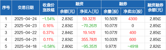 燕东微:融资净买入59.32万元,融资余额2.83亿元(04-24)