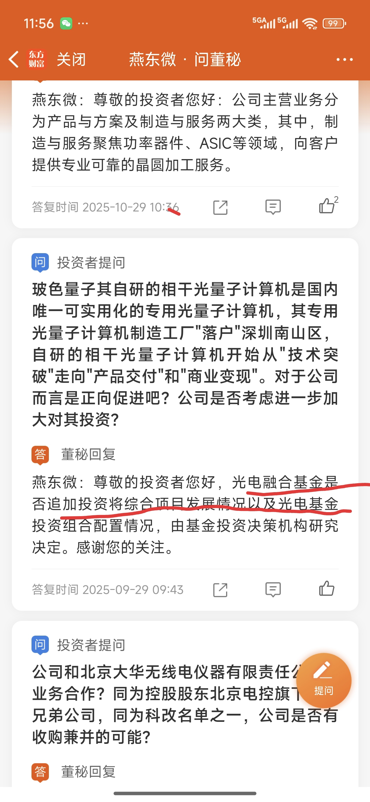 从投资逻辑关系来说!燕东微是玻色量子的间接股东!并且在回答投资者时,明确说到后期是否追加由基金自主决策,这也说明了两层关系。第一燕东微确实持有玻色量子股份,第二可能有追加的意向,这个意向取决于基金自主决策,并没有否决这种可能!