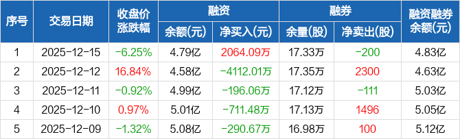 燕东微:融资净买入2064.09万元,融资余额4.79亿元(12-15)