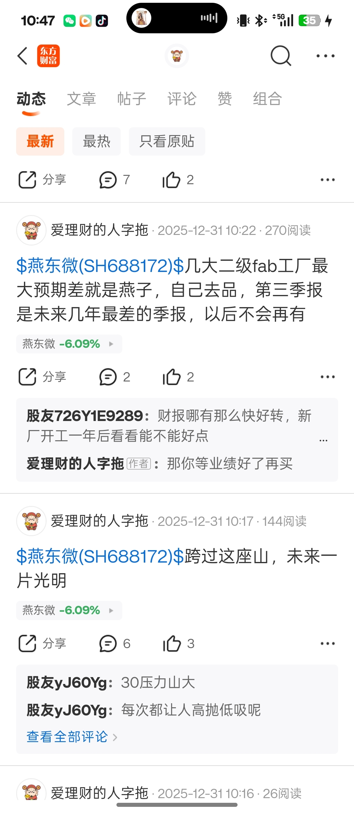 温馨提示: 1.根据《证券法》规定,禁止编造、传播虚假信息或者误导性信息,扰乱证券市场;2.用户在本社区发表的所有资料、言论等仅代表个人观点,与本网站立场无关,不对您构成任何投资建议。用户应基于自己的独立判断,自行决定证券投资并承担相应风险。《东方财富社区管理规定》