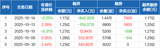 希荻微:融资净偿还842.09万元,融资余额1.17亿元(10-14)