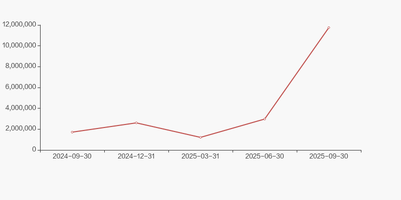 自2024年9月30日以来,公司股东户数连续4期上涨,截至目前增幅为24.90%。2024年9月30日至2025年9月30日区间股价上涨47.80%。