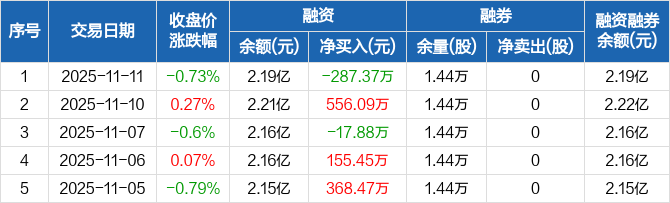 希荻微:融资净偿还287.37万元,融资余额2.19亿元(11-11)