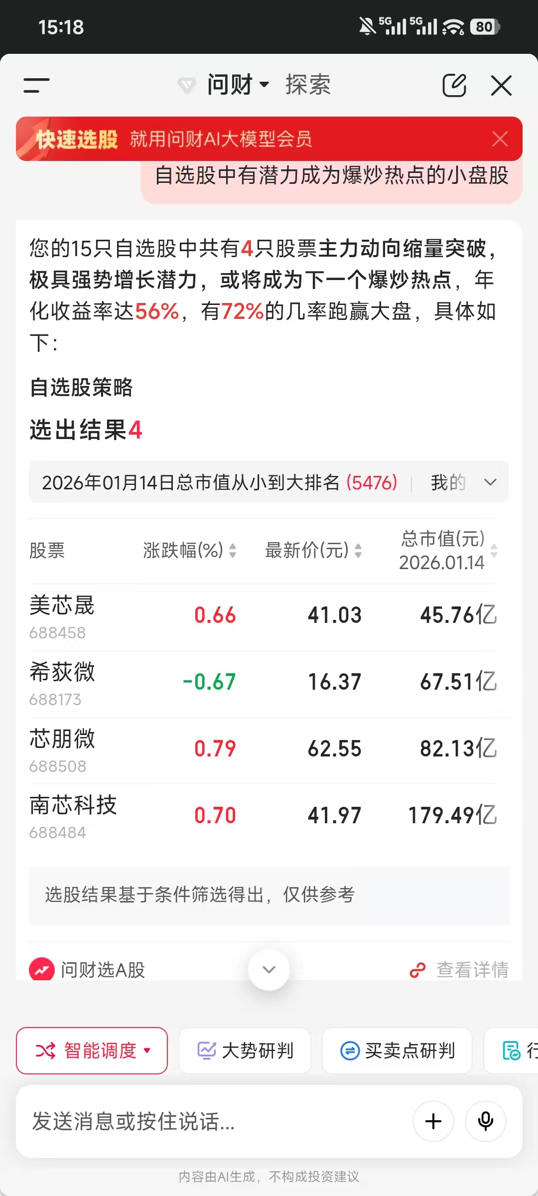 刚跑了下策略,自己都惊了!手里15只票里筛出来4只,清一色“主力缩量突破”形态,全是芯片股——美芯晟、希荻微、芯朋微、南芯科技。这可不是瞎编,系统信号显示这种结构后劲通常很猛,历史回测年化能到56%!市值都还不算大,尤其前面两只,位置和形态有点意思。板块资金是不是在悄悄聚拢?留个记号,一周后来挖坟验证!