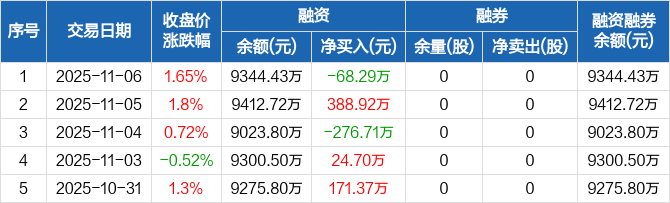 高凌信息:融资净偿还68.29万元,融资余额9344.43万元(11-06)