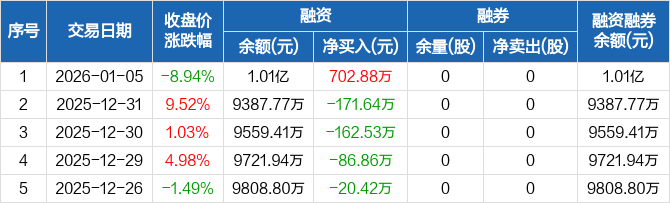 高凌信息:融资余额1.01亿元,创近一年新高(01-05)
