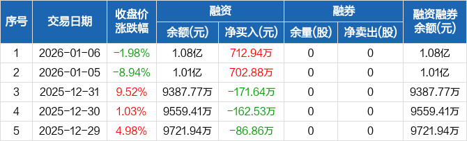 高凌信息:融资余额1.08亿元,创近一年新高(01-06)