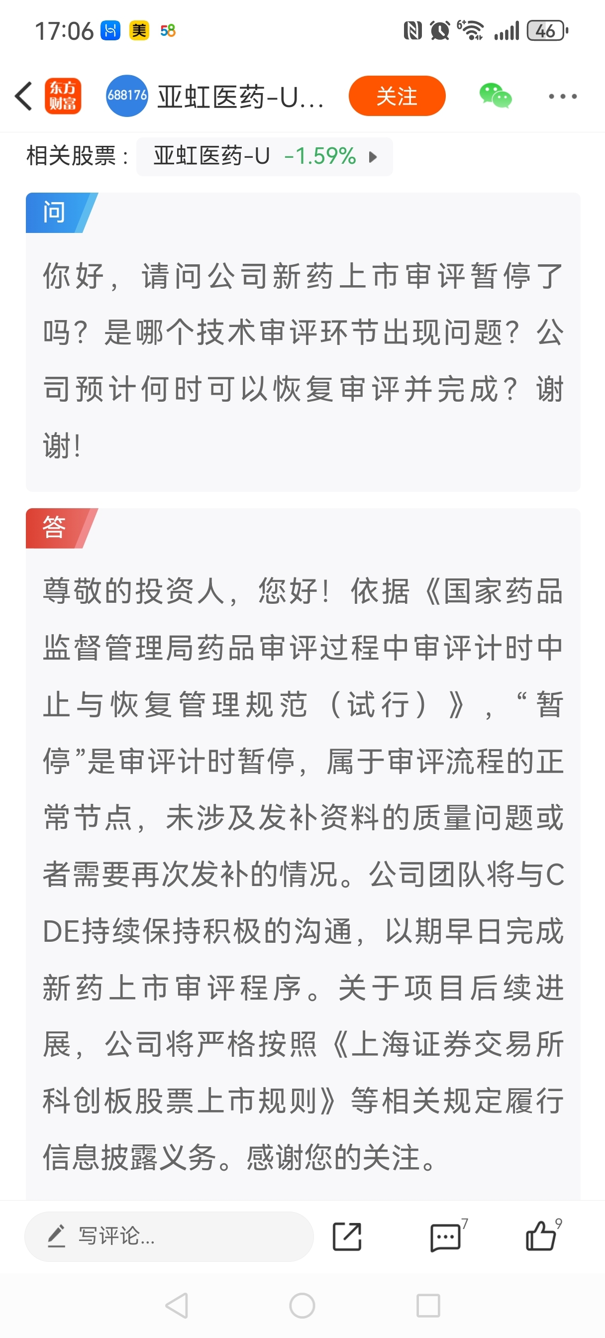 $亚虹医药-U(SH688176)$ 如果暂停的原因是非公开信息,那公司在互动平台的回复算啥