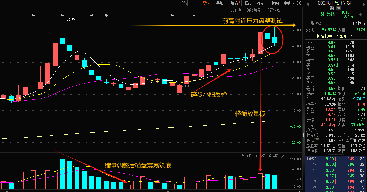 粤传媒002181:广州G资背景以及全运会相关。短期只是遇前压震荡一下,很多人是关心则乱。其实纵观整体趋势,这里就是个压力测试加回踩5均。回踩已经完成,随时可能再度新高甚至板。