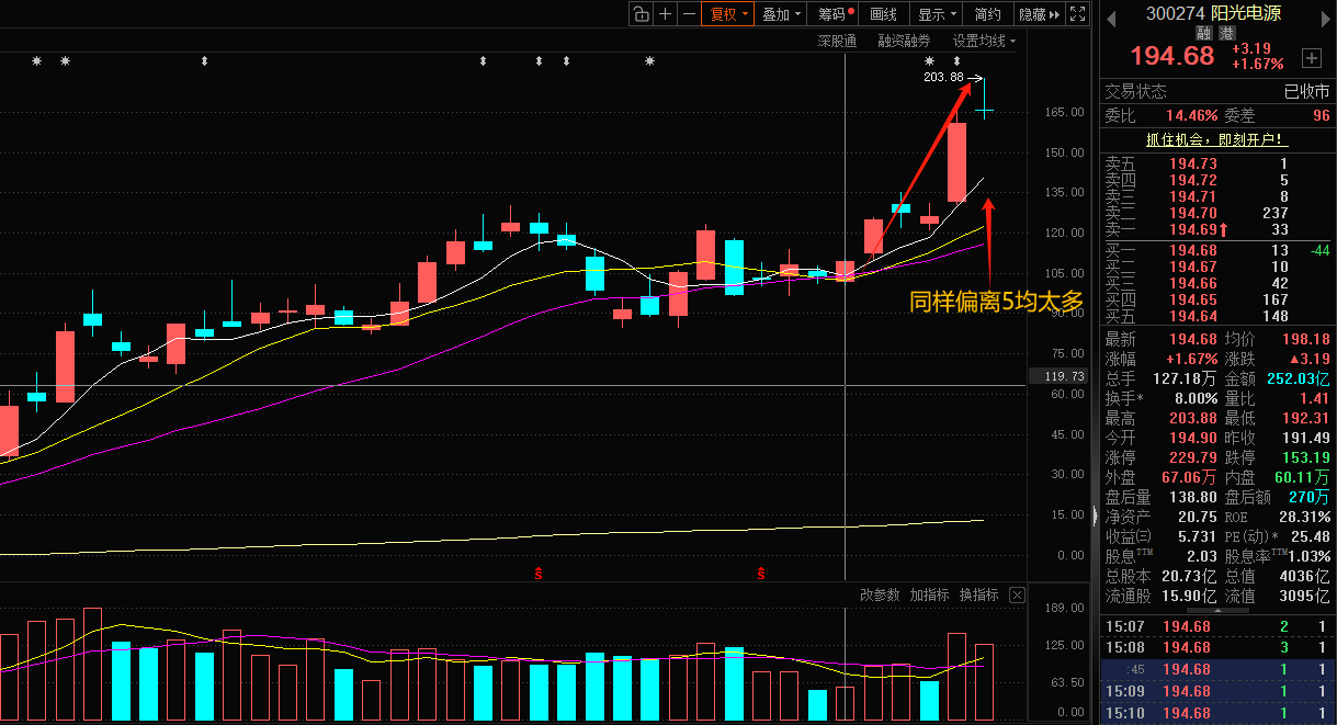 阳光电源300274:短期因为拉的太快均线跟不上,所以也有蓄力的可能。不过昨天已经做了大的减法,那么短期就只需要盯紧5均了,按照原来的计划,如果破5均或者滞张就撤。公司基于光伏逆变器应用开发了全球首台35KV直挂的光伏逆变器,基于光储充应用的多端口SST能量路由器,后期会持续研究和开发该技术的相关应用。