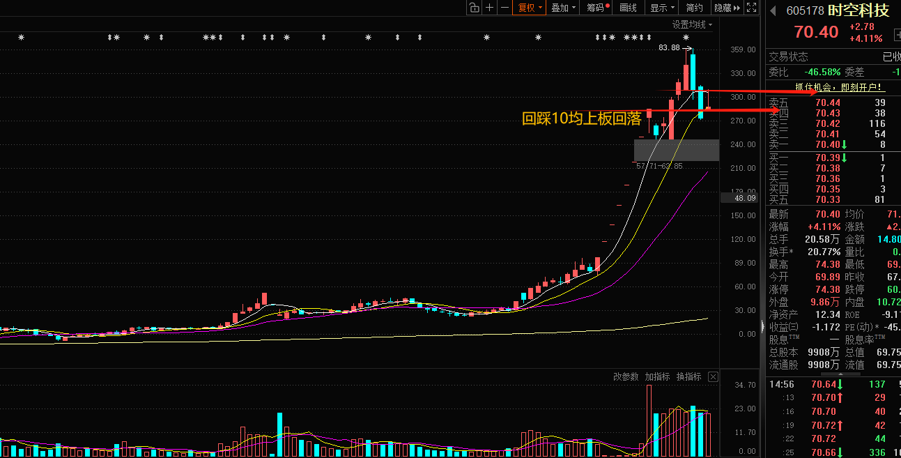 时空科技605178:拟收G嘉合劲威,昨天高开强势上板本来是很好看的,但是开板之后回落有点看不明白,所以昨天的上影线能反包才好,就算不能反包也不能再破10均了。