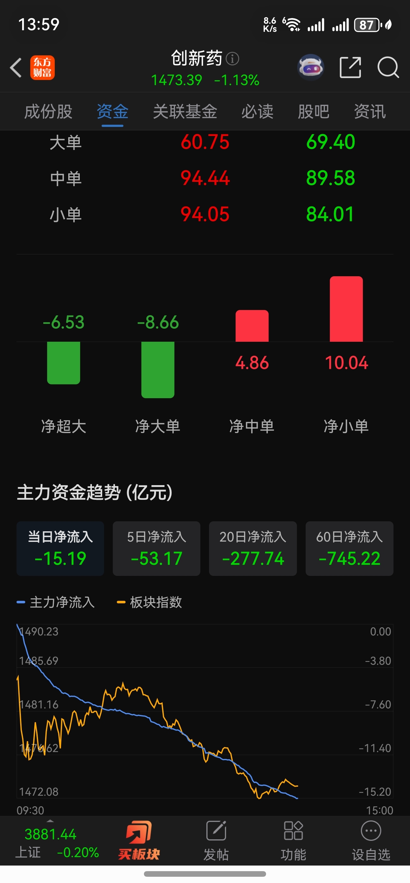 创新药板块趋势向下,一直大量出货,千万不要追涨
