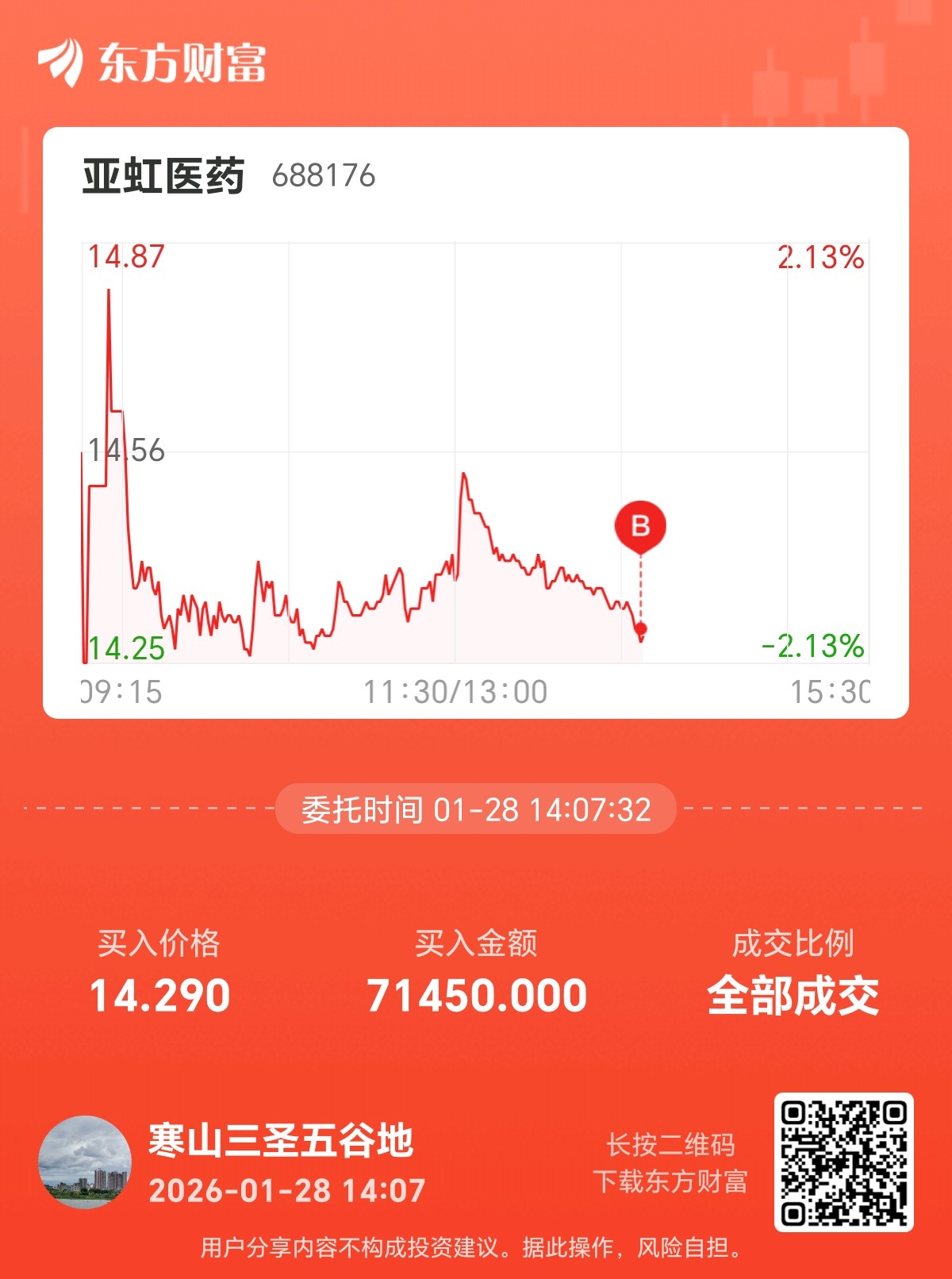 $亚虹医药-U(SH688176)$ 报告已经买入不用慌,