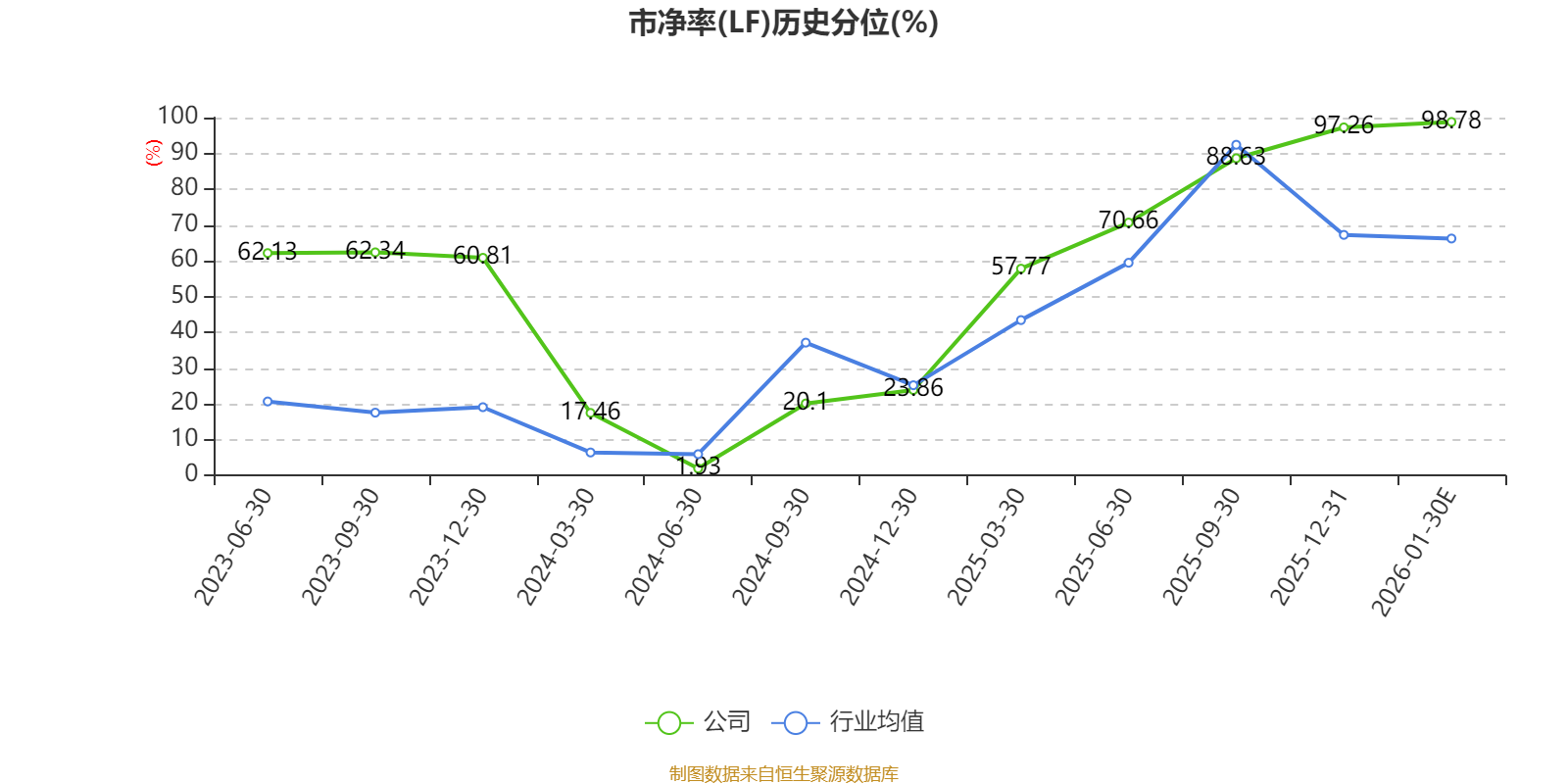 市盈率、市净率为负时,不显示当期分位数,会导致折线图中断。
