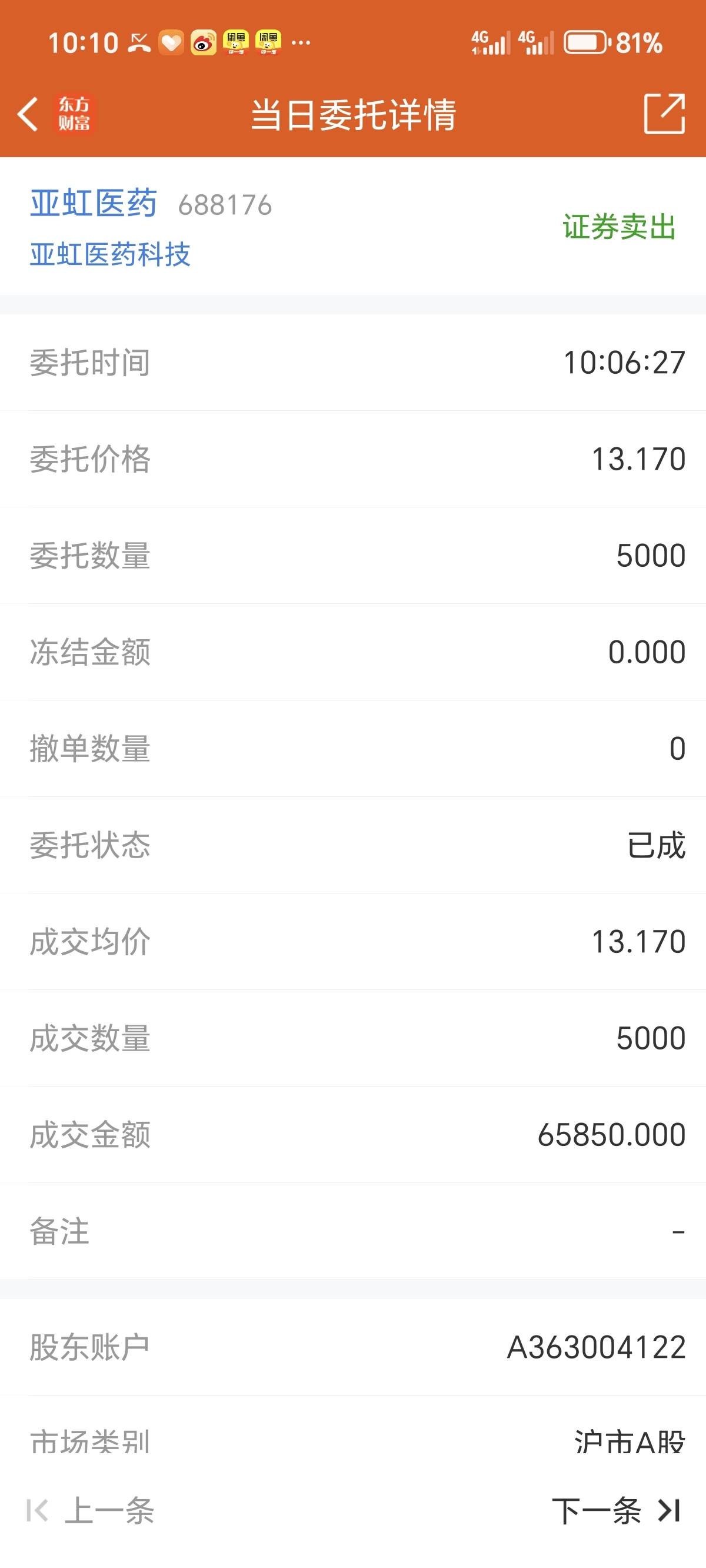 $亚虹医药-U(SH688176)$ 主力不想封涨停板先撤5000股
