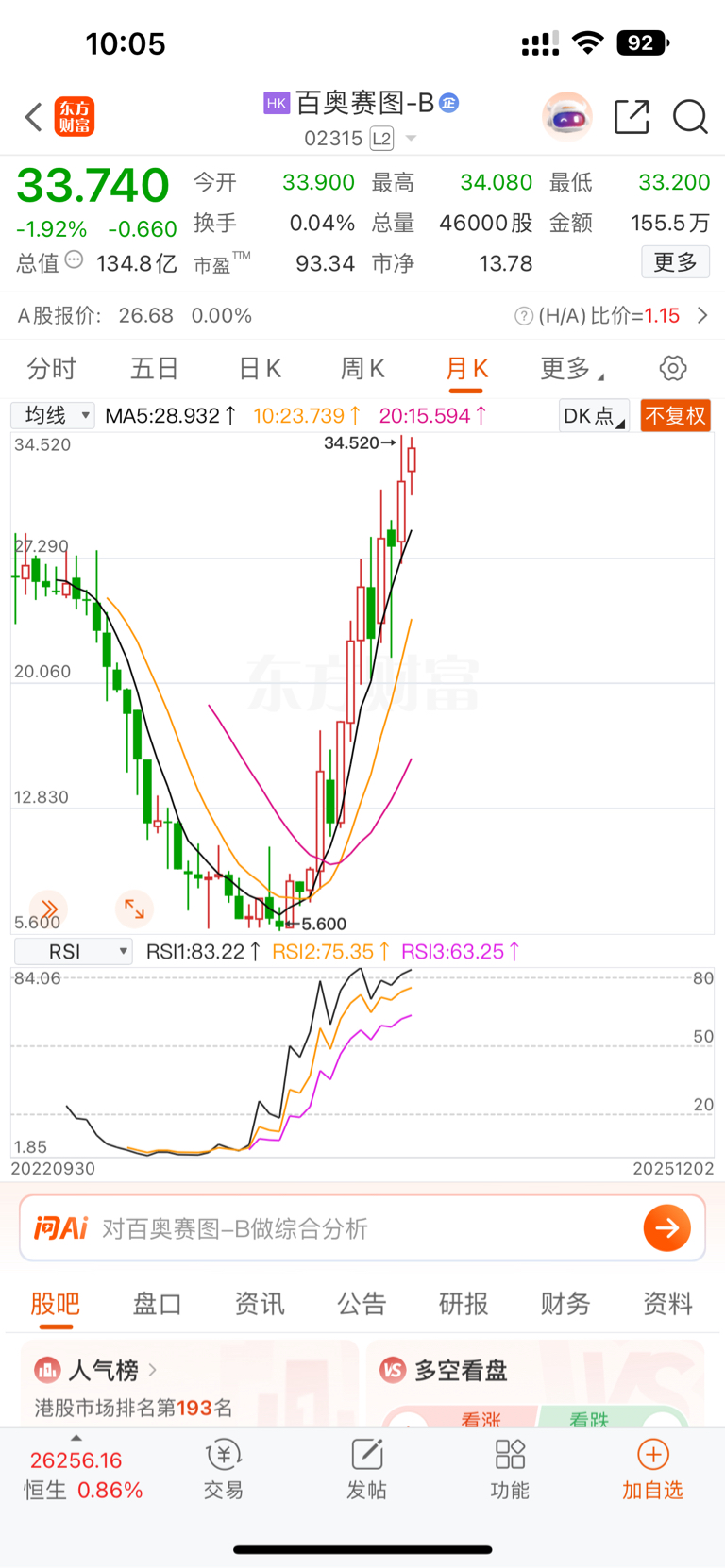 都是百奥开头的,怎么差距就那么大呢。中了一签,看看能搞点小肉吧。