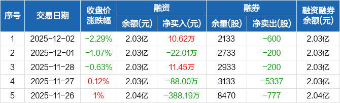 百奥泰:融资净买入10.62万元,融资余额2.03亿元(12-02)