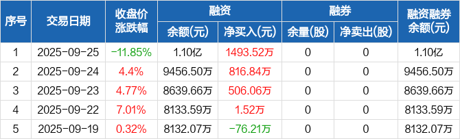 万德斯:融资余额1.1亿元,创历史新高(09-25)