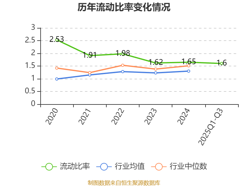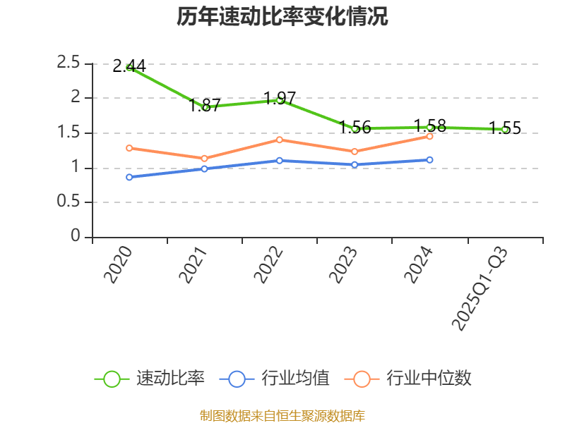 2025年前三季度,公司流动比率为1.6,速动比率为1.55。