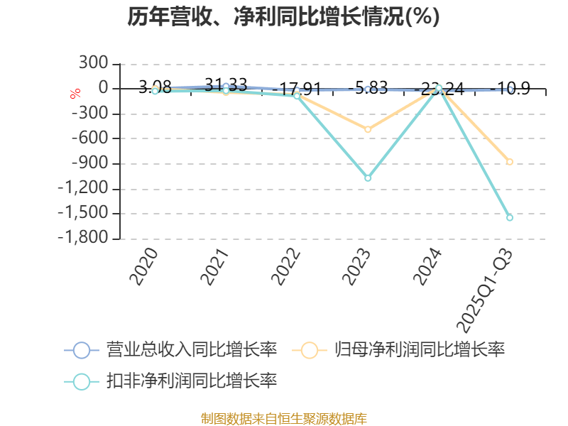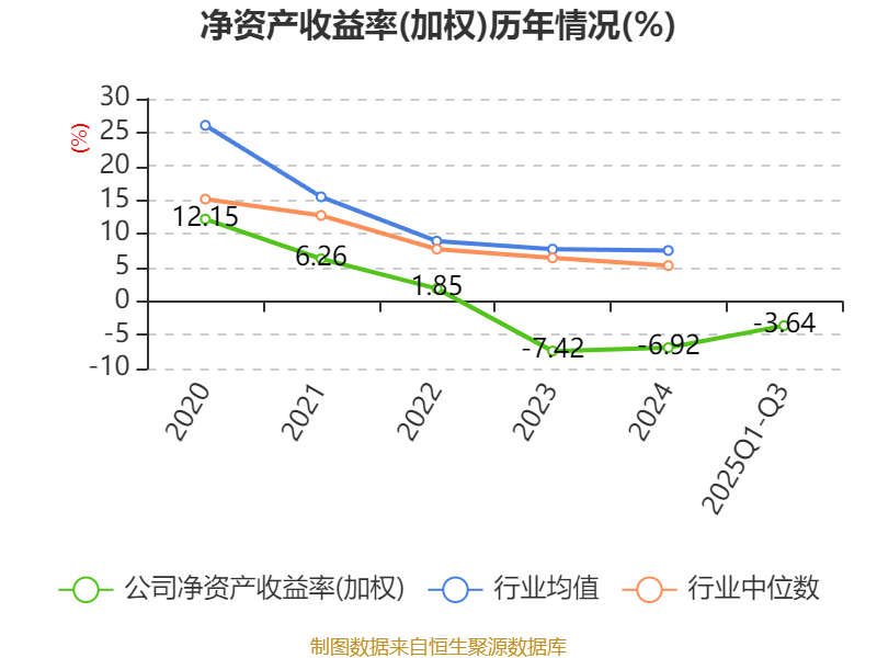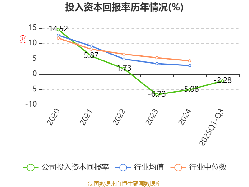 盈利能力方面, 2025年前三季度公司加权平均净资产收益率为-3.64%,同比下降4.07个百分点。公司2025年前三季度投入资本回报率为-2.28%,较上年同期下降2.81个百分点。
