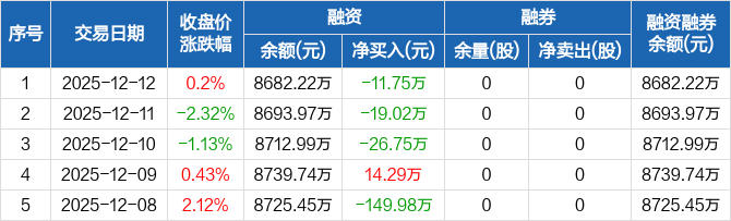 万德斯:连续3日融资净偿还累计57.51万元(12-12)