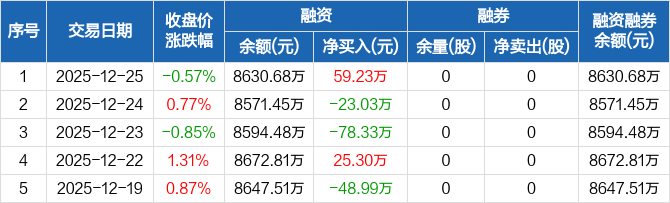 万德斯:融资净买入59.23万元,融资余额8630.68万元(12-25)