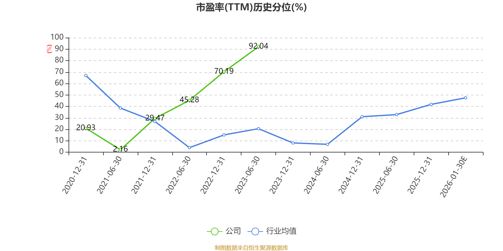 以本次披露业绩预告均值计算,公司近年市盈率(TTM)图如下所示: