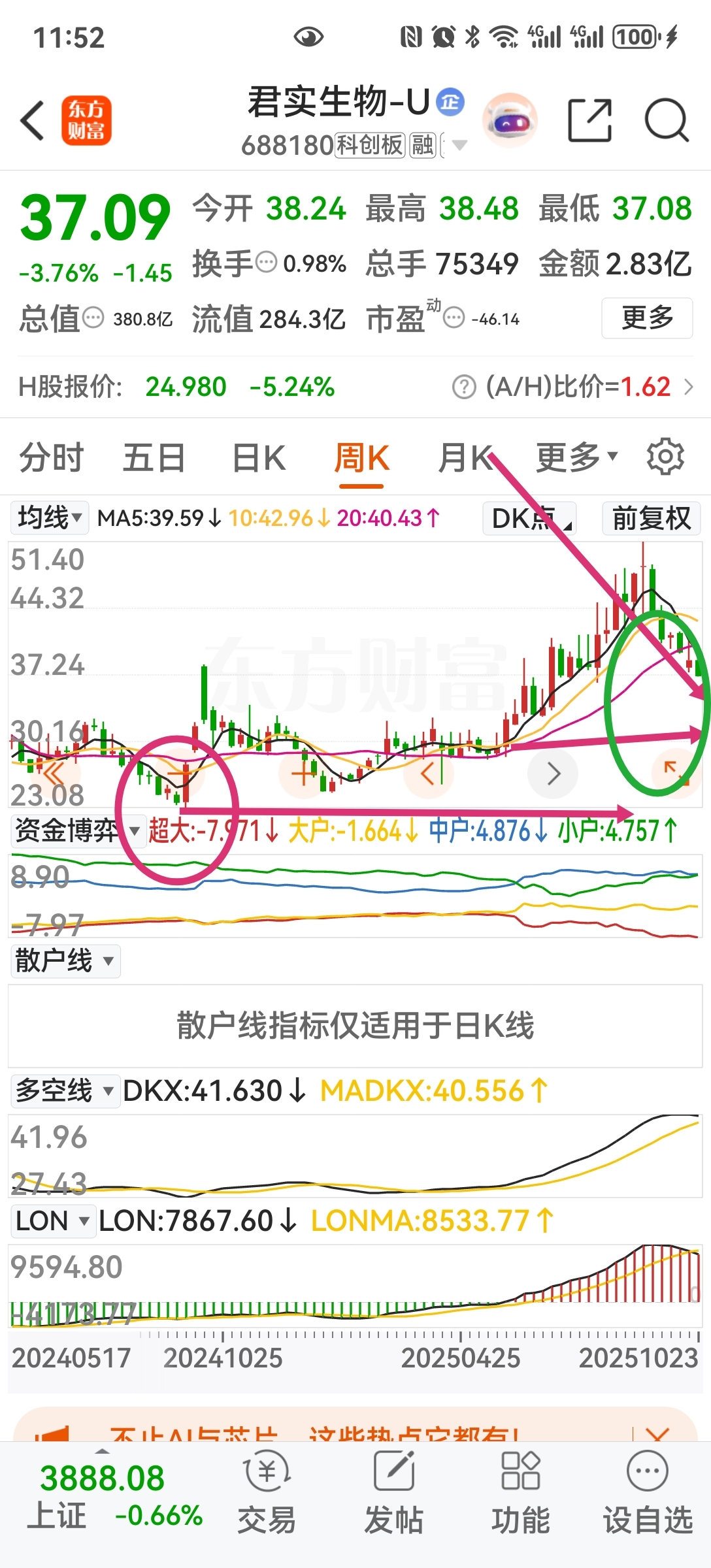 k线走势绝对是有规律的,你们去看周线吧!远没有跌到位。任何时候都是出货。