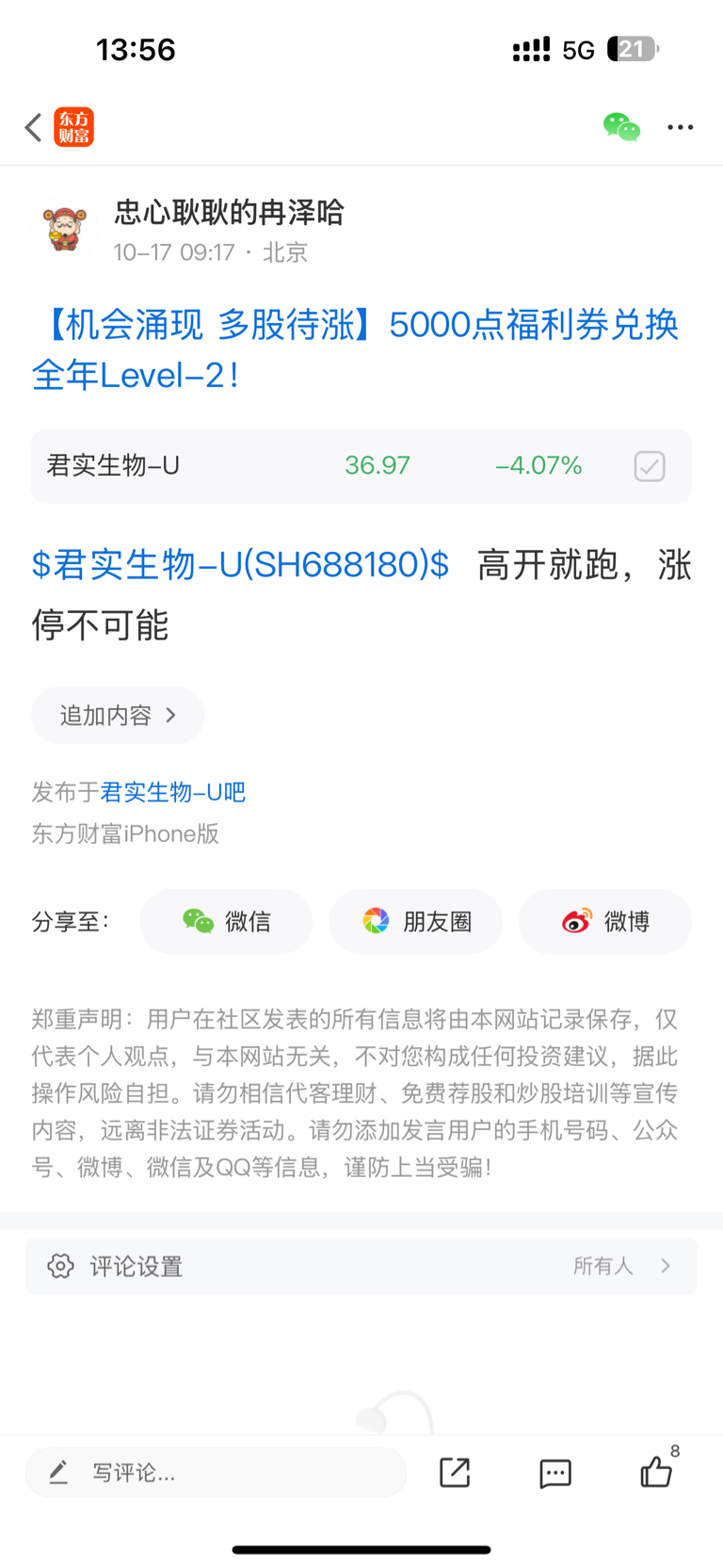 温馨提示: 1.根据《证券法》规定,禁止编造、传播虚假信息或者误导性信息,扰乱证券市场;2.用户在本社区发表的所有资料、言论等仅代表个人观点,与本网站立场无关,不对您构成任何投资建议。用户应基于自己的独立判断,自行决定证券投资并承担相应风险。《东方财富社区管理规定》