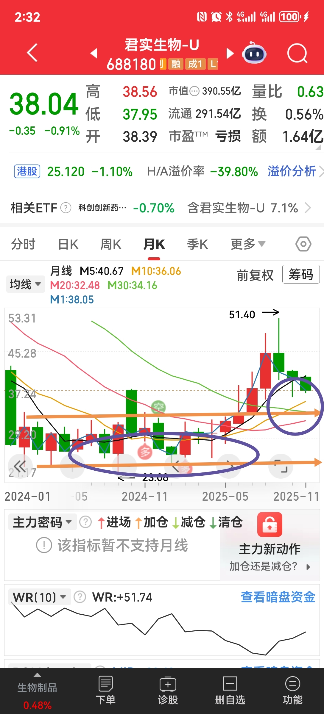 主力25元区间进行了长达一年的震仓横盘收货,才启动了反弾。你们想想,他刚把筹码卖给你们,他会这么贵回收吗?