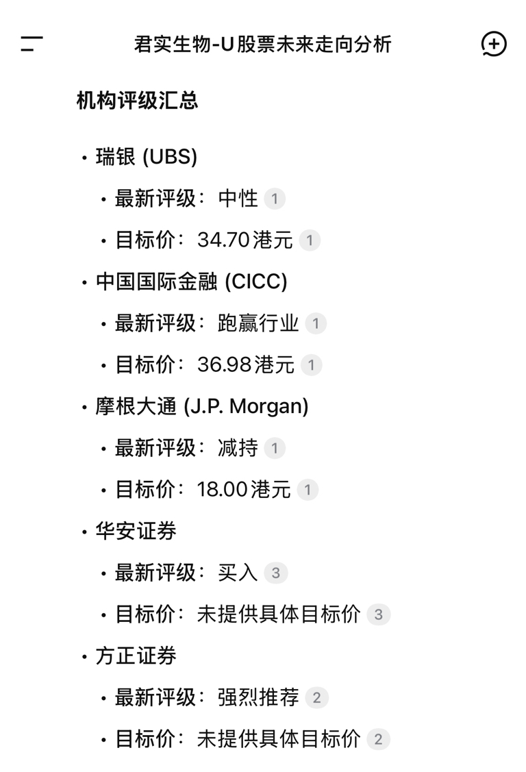 摩根大通看空君实生物现在价格的百分之二十五,即27元左右,但是看他的预测多数吃亏