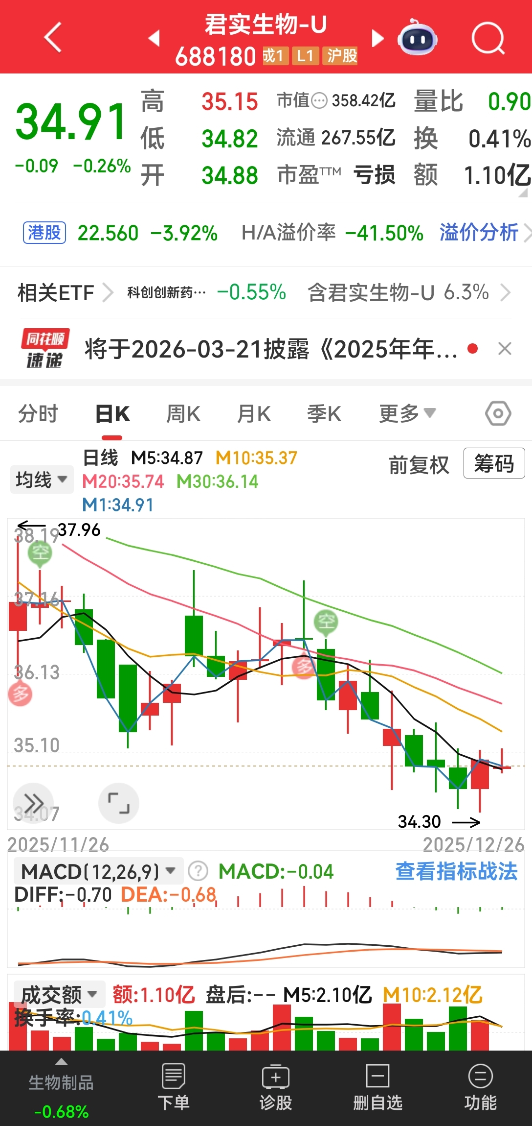 下周开启爆跌模式。你们等着吧!我就在20元附近等你们。