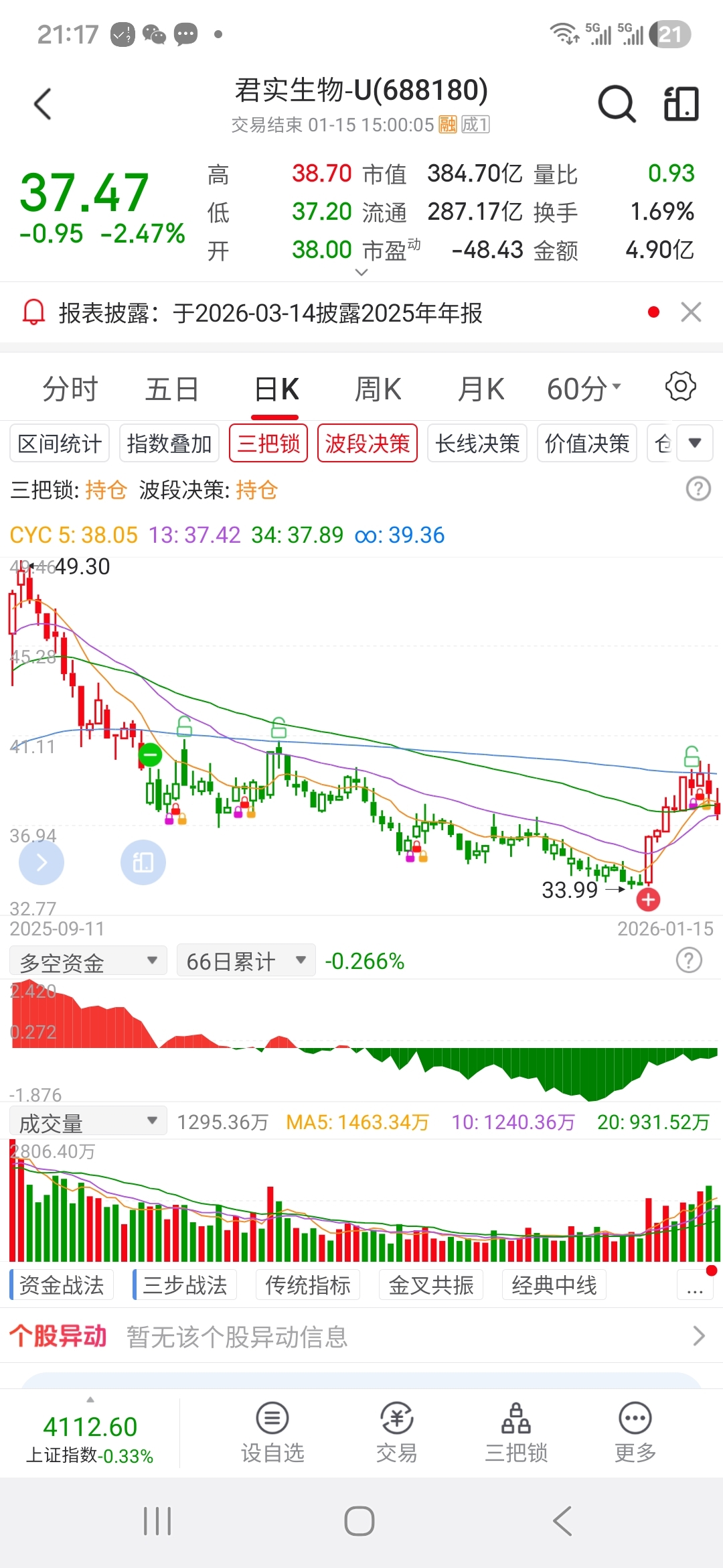 $君实生物-U(SH688180)$ 恐怕要跌破34了