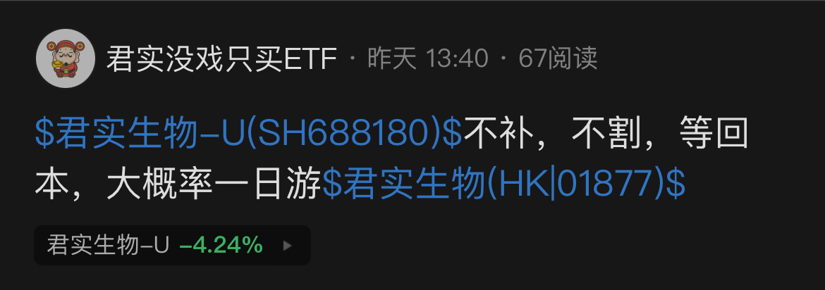 $君实生物-U(SH688180)$ 不补,不割,公司倒不了,回本一年两年难$君实生物(HK|01877)$