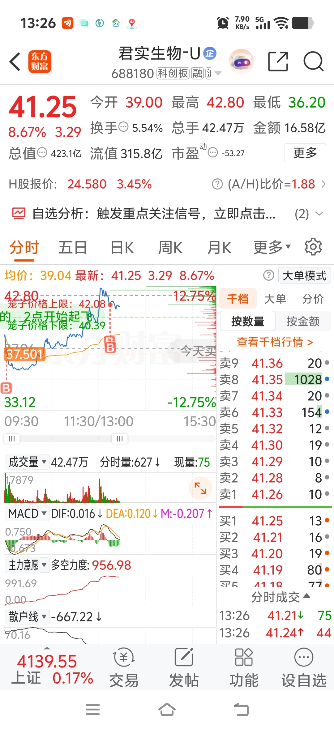 看见41.35这个1028卖单我就放心了,因为压单必涨