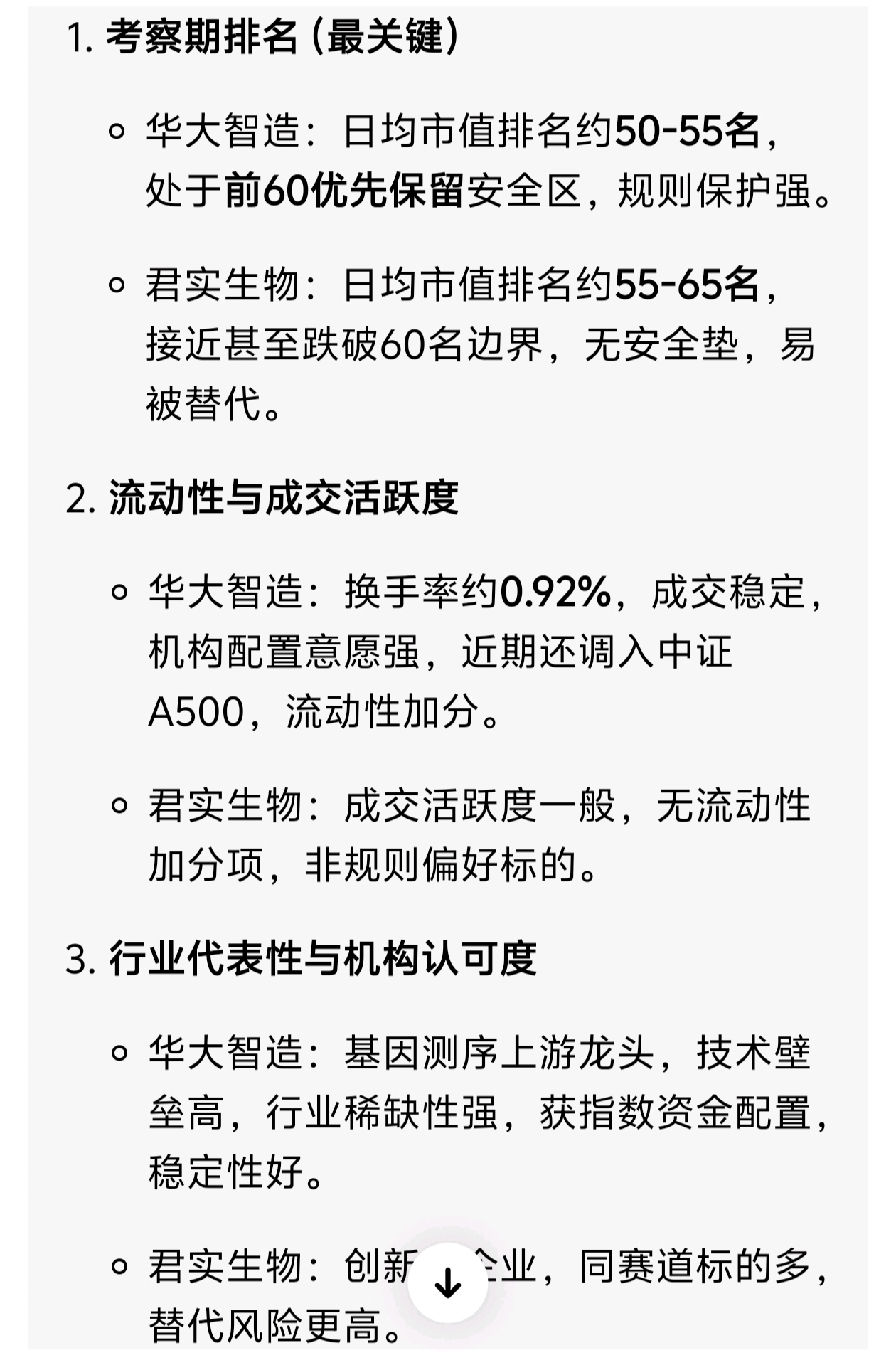 这样看的话,十天春节长假后的二月底被调出科创50的概率就非常高了,华大制造和君实生物总市值差距不大,但调出概率差距很大