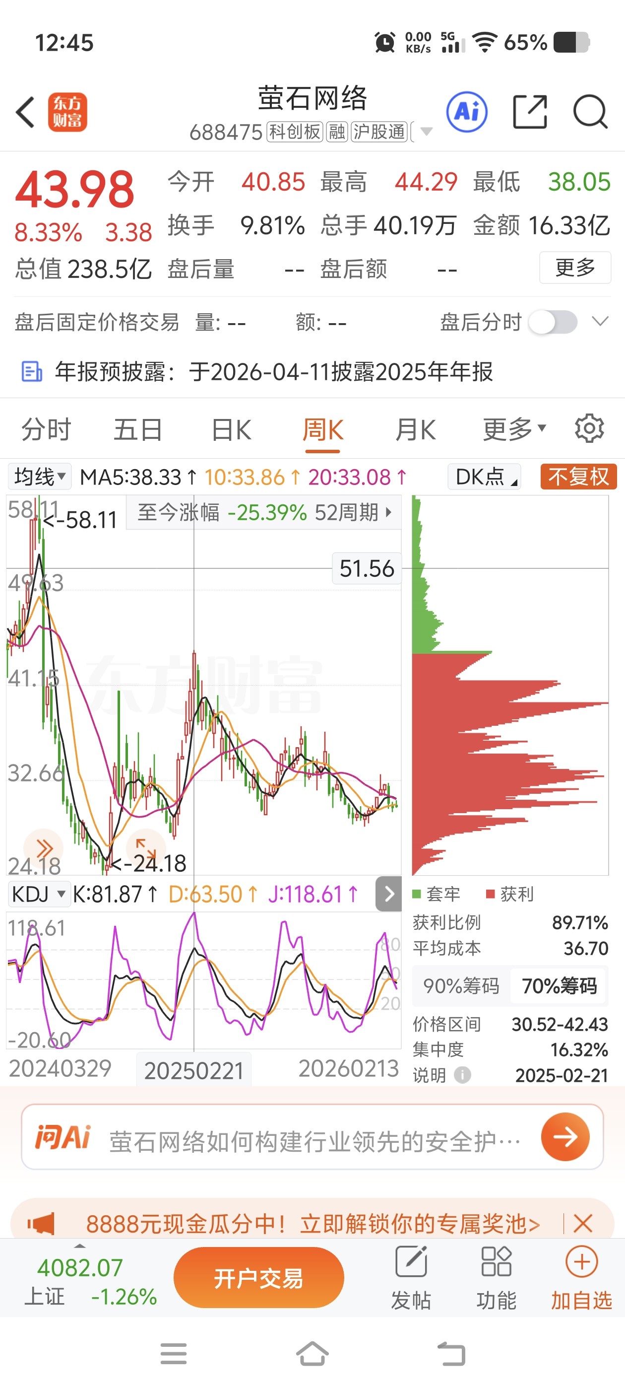 与688475萤石网络差不多总股本,人家6亿多股都是大二股东持有,合计百分之八十控股,每年四五亿利润,也就三十元 ,三月份与君实生物PK调出谁或一起调出,国盾量子三月份是要被调入科创50,绿的谐波和安集科技两个里面应该也有一个,摩尔线程也有较大概率,十天春节长假后很快就是二月底披露调整窗口了