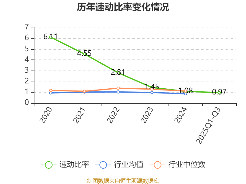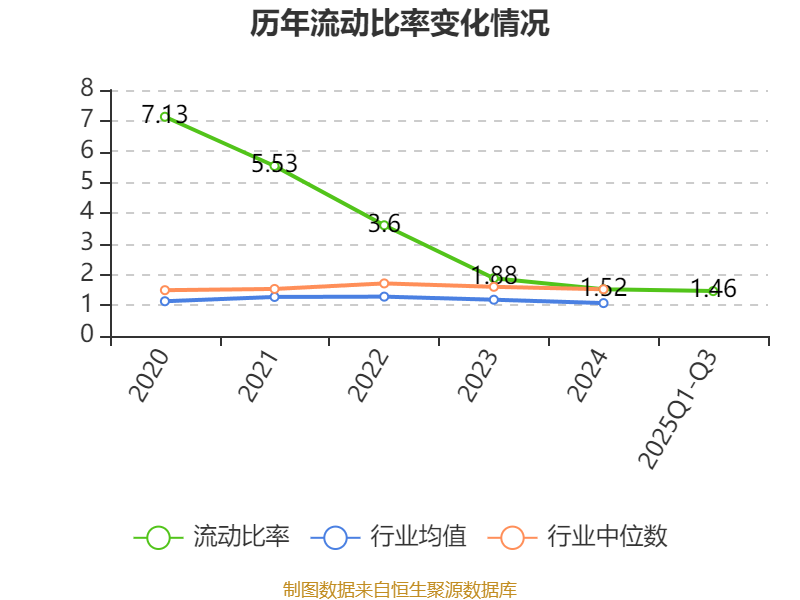 2025年前三季度,公司流动比率为1.46,速动比率为0.97。