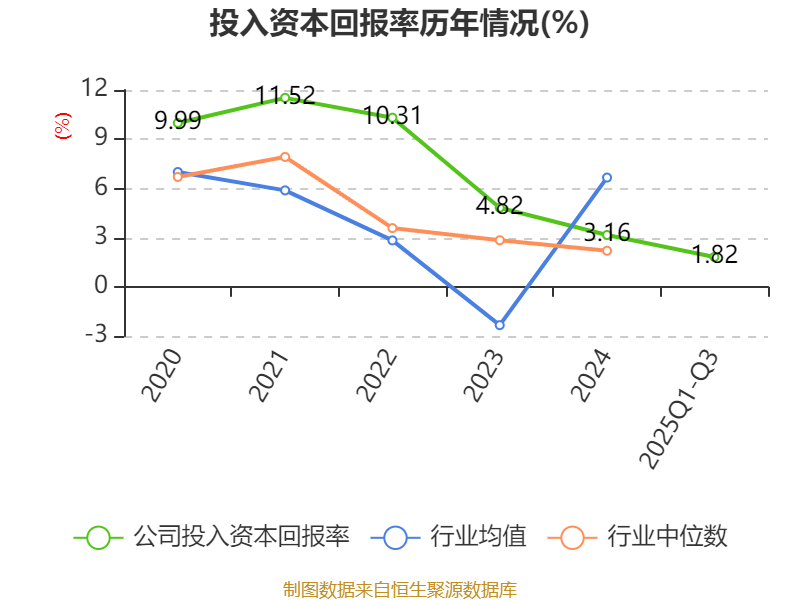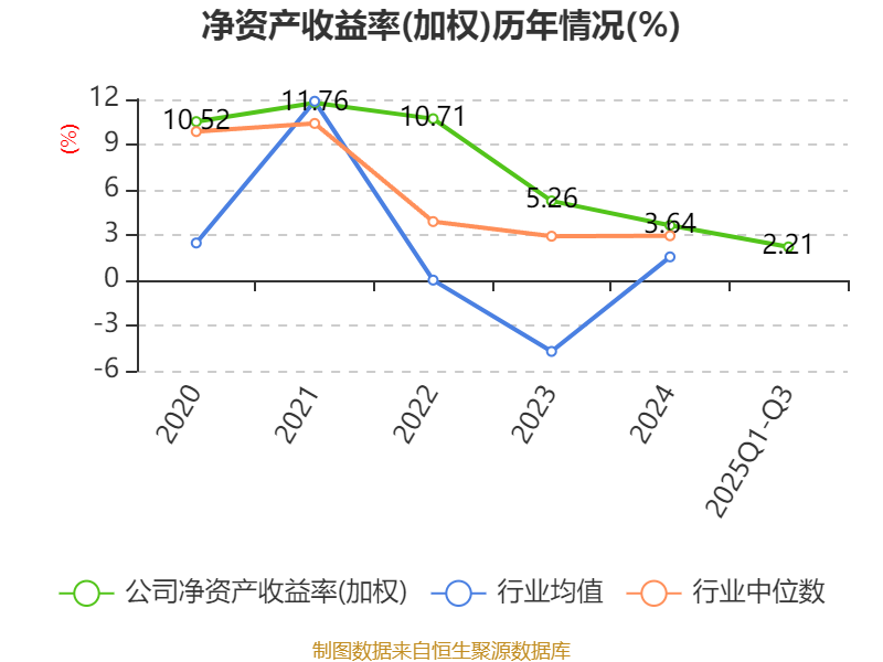 盈利能力方面, 2025年前三季度公司加权平均净资产收益率为2.21%,同比下降0.73个百分点。公司2025年前三季度投入资本回报率为1.82%,较上年同期下降0.75个百分点。
